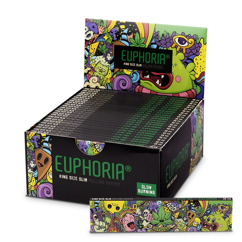 Wykonane w 100% z włókien drzewnych bibułki EUPHORIA zapewniają powolne, równomierne spalanie, zapewniając niezmiennie doznania podczas palenia.