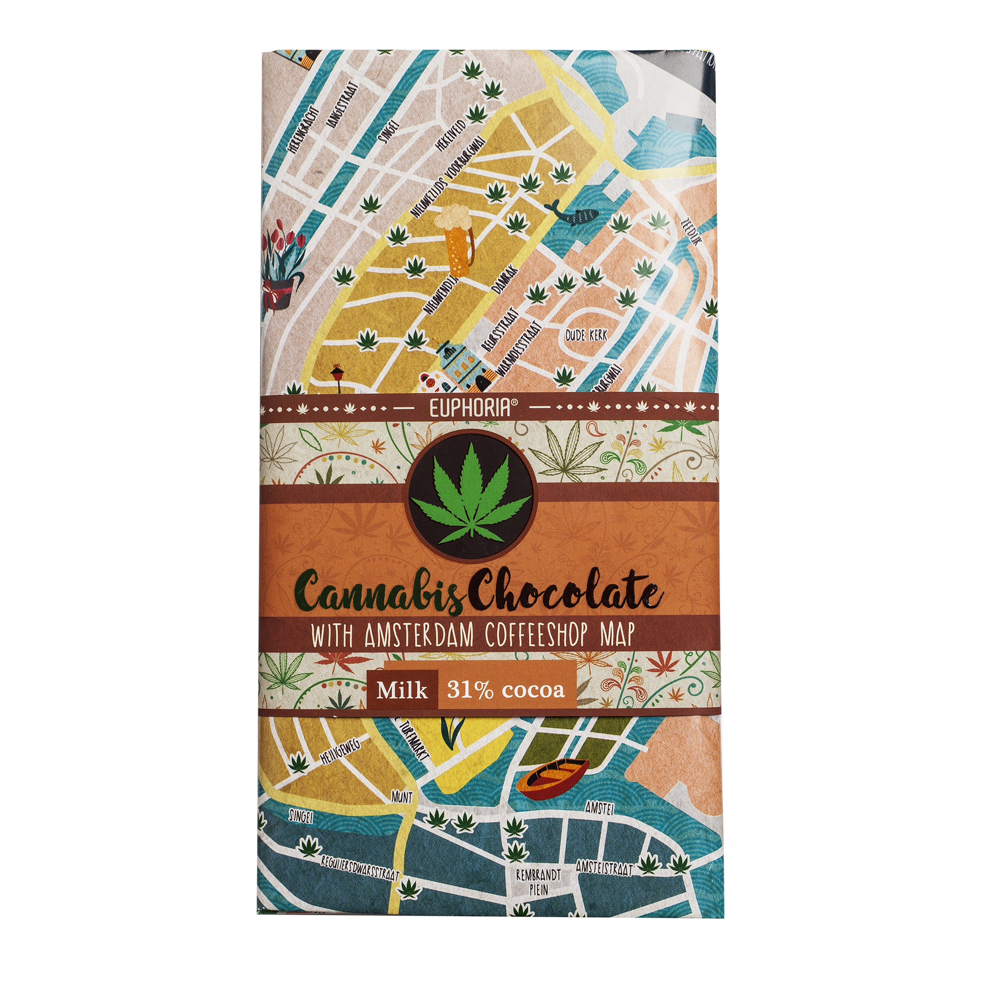 Opakowanie czekolady stanowi mapa Amsterdamu z zaznaczonymi Coffeeshopami
