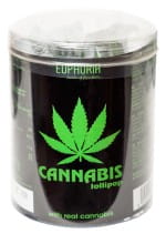 Składniki: cukier, syrop glukozowy, regulator kwasowości – kwasek cytrynowy, naturalny smak – olej eteryczny z konopi, barwniki: E141 (ii) - kompleksy miedziowe chlorofiliny