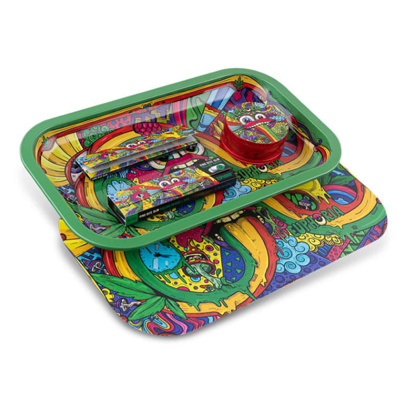 - Metalową tacę do skręcania papierosów (270 × 160 mm) z magnetyczną pokrywką – idealną podstawę do skręcania papierosów