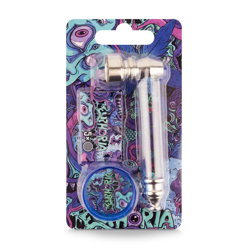 Zestaw Fajka metalowa, grinder i sitka Euphoria Psychedelic